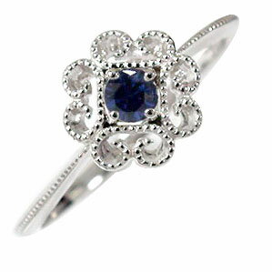 サファイア 花 リング プラチナ ダイヤモンド フラワーモチーフ ピンキー 指輪 送料無料