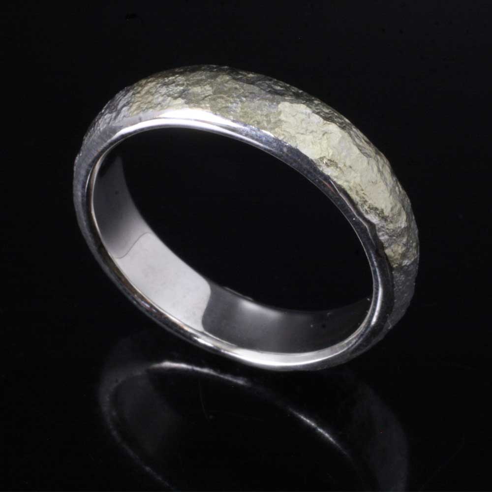 金鎚で叩いて形を形成する鎚目リングは 光の反射でリングの表情が変わる飽きのないシンプルなリング。