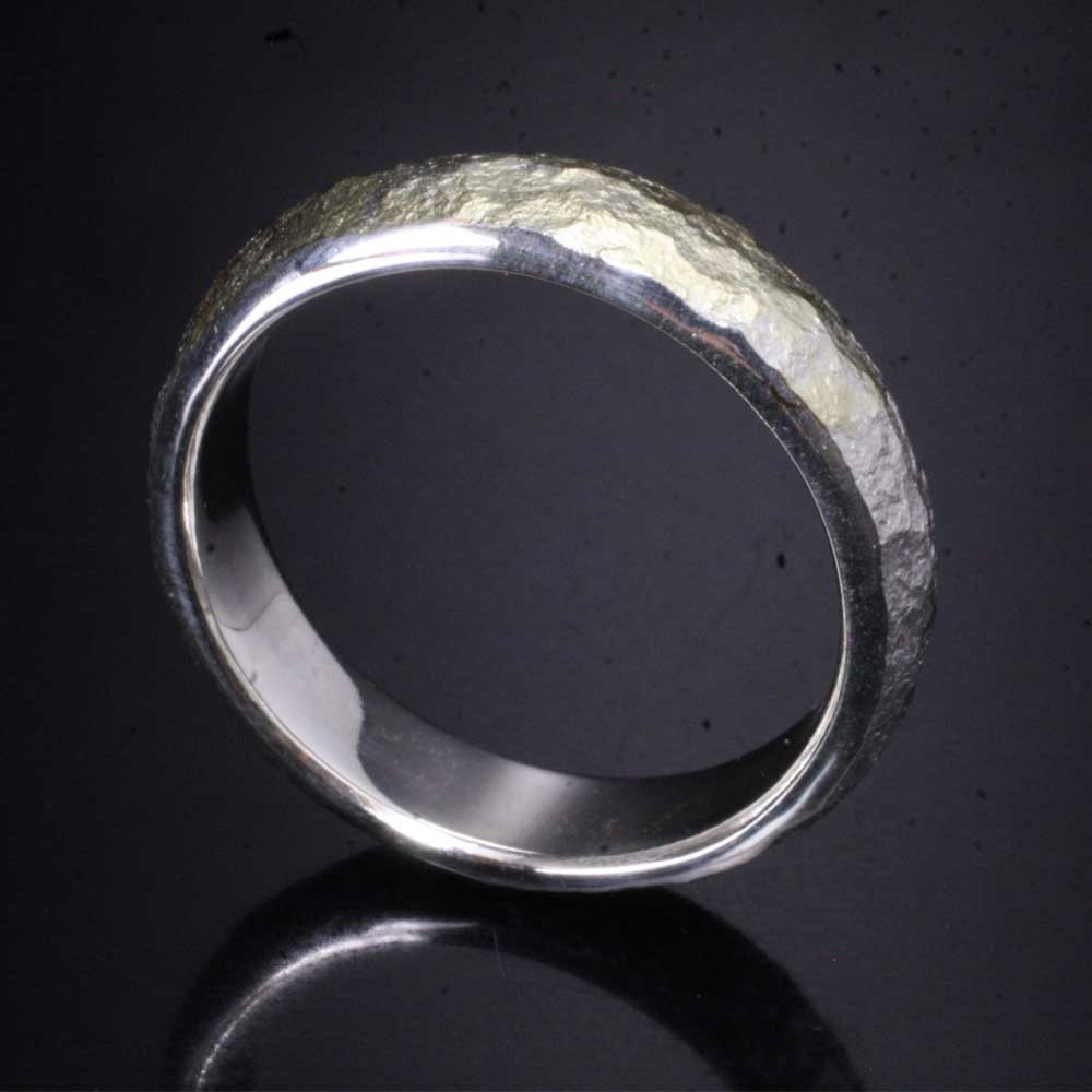 ボディの一部にK18を溶かし金鎚により鎚目を施した、 シルバーとゴールドのグラデーションも楽しめるアイテム。