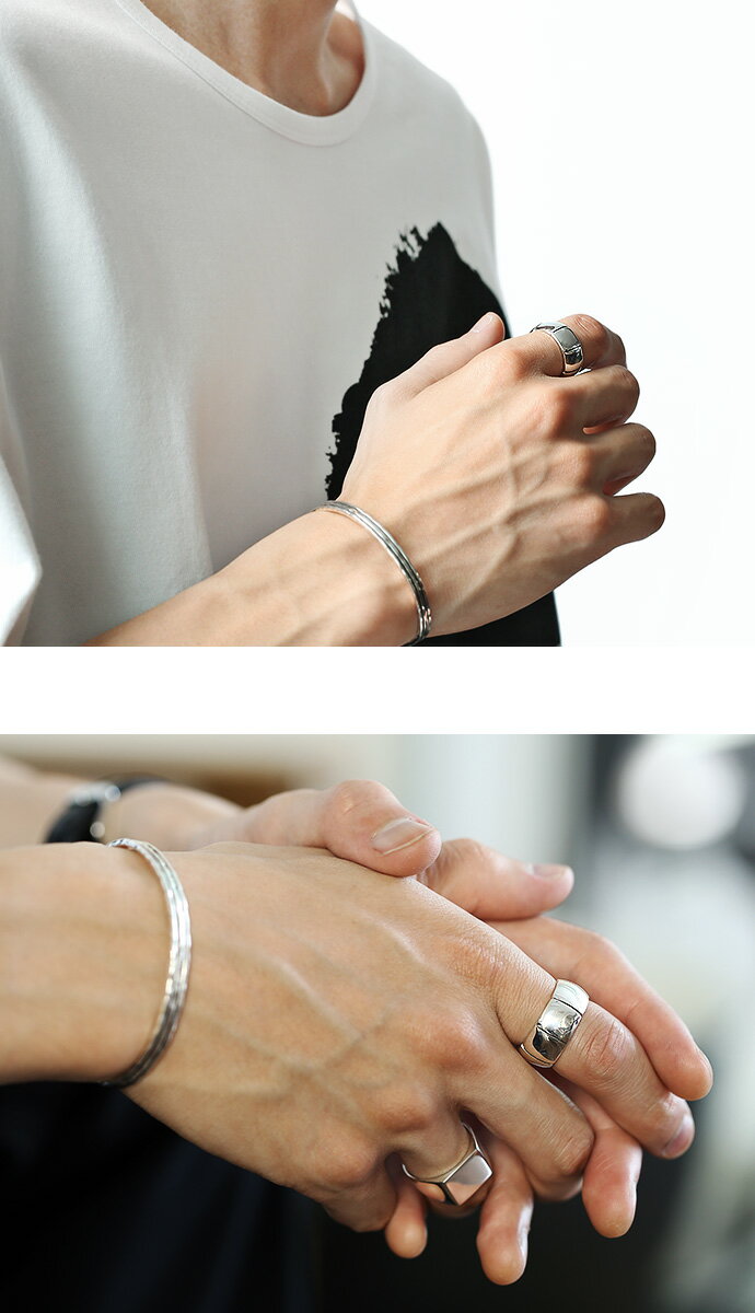 ▼コーディネートで使用したアイテムはこちら▼ 商品詳細 説明 厚みがある幅広の甲丸リングに、味のある線を彫金したボリューミーなリング。