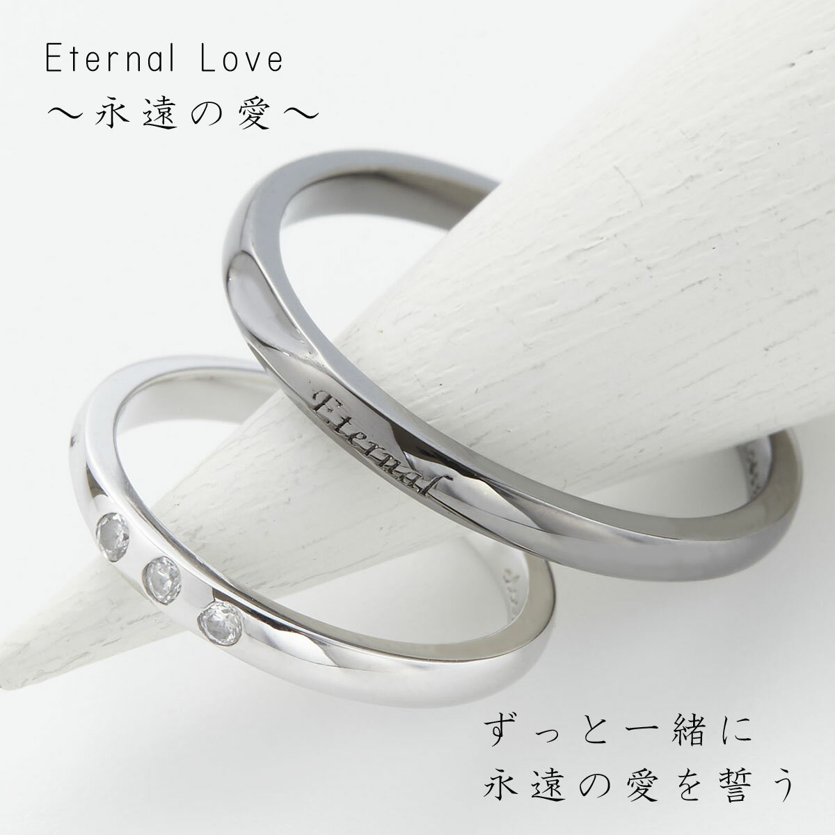 メンズリングには(Eternal 永遠) レディースリングには(Love 愛)の刻印入り。