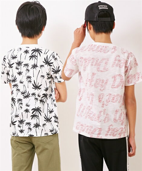 Tシャツ カットソー キッズ 総柄プリントポケット付 半袖 2枚組 男の子 子供服・ジュニア服 トップス オフ×ブラック+オフ×レッド/黒系+オフ×黒 身長130〜170cm ニッセン