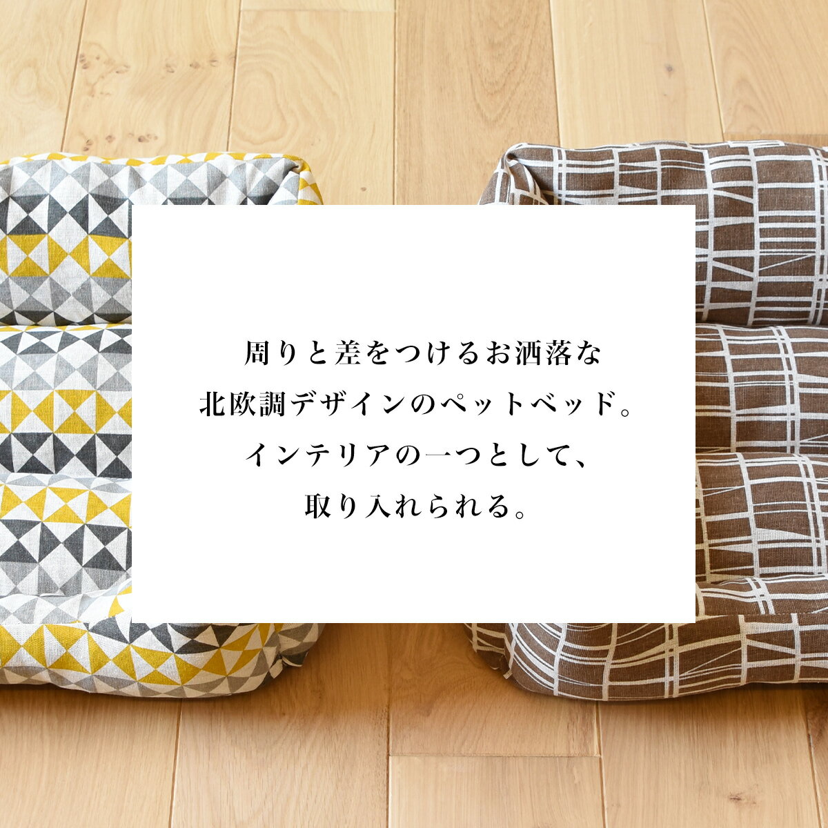 [北欧調デザイン] ふかふか スクエア ペットベッド Mサイズ 周りと差をつけるお洒落な北欧調デザインのペットベッド。